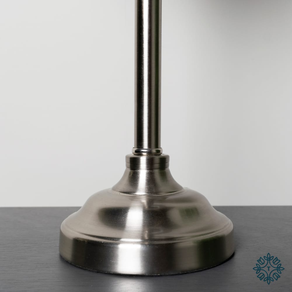 Buffet lamps take up minimal space, and this slimline design in silver brushed satin metal is no exception. The woven shade’s light silver-grey colour is understated and neutral. The Dani’s neat size makes it the perfect bedside light, but they’re also beautiful as a pair on a sideboard or console.